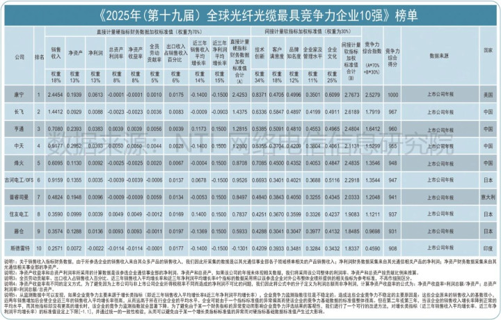 美国的康宁(Corning)、意大利的普睿司曼(Prysmian)、印度的斯德雷特(Sterlite Technology)榜上有名。康宁凭借在销售收入、净利润、技术创新、品牌知名度、企业文化等多方面的优势蝉联第一。